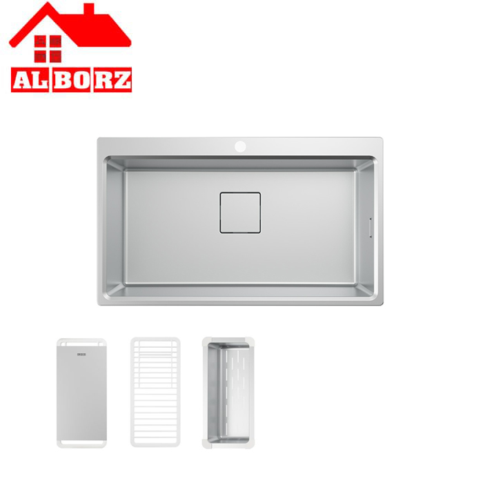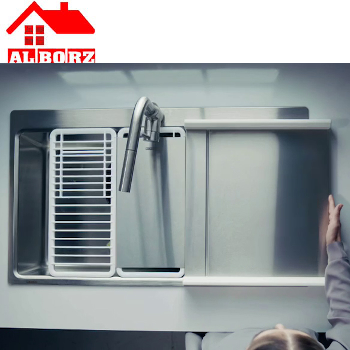 این سینک استیل البرز دارای اکسسوری های متنوعی از قبیل آبچکان متحرک، سبد میوه شور، تخت کار، سیفون می باشد